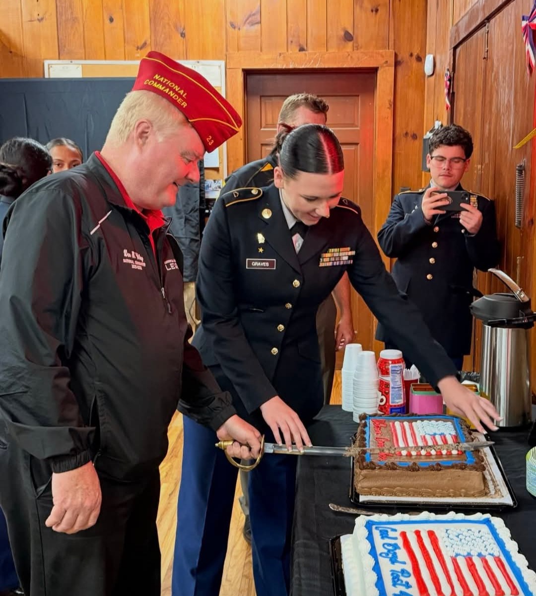 The National Cmdr along with the assitance of a Cass JROTC cadet cut the cake with a cavalry saber.